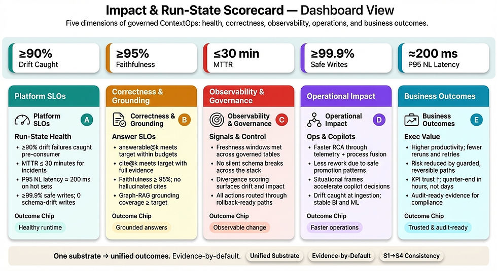 Operational gaps | Assume data is correct | Governed ContextOps with gates |